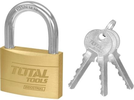 Ključavnica, industrijska, 50 mm. tehnični parametri 50 mm. znamka TOTAL. dodatni parameter teža 270 g, 3 kosi ključev.11,07 €