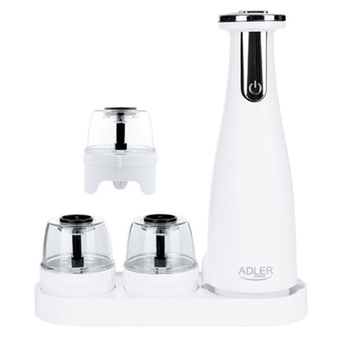 ADLER električni mlin za sol in poper - set 3 brusilniki, USB, bel, AD4449W